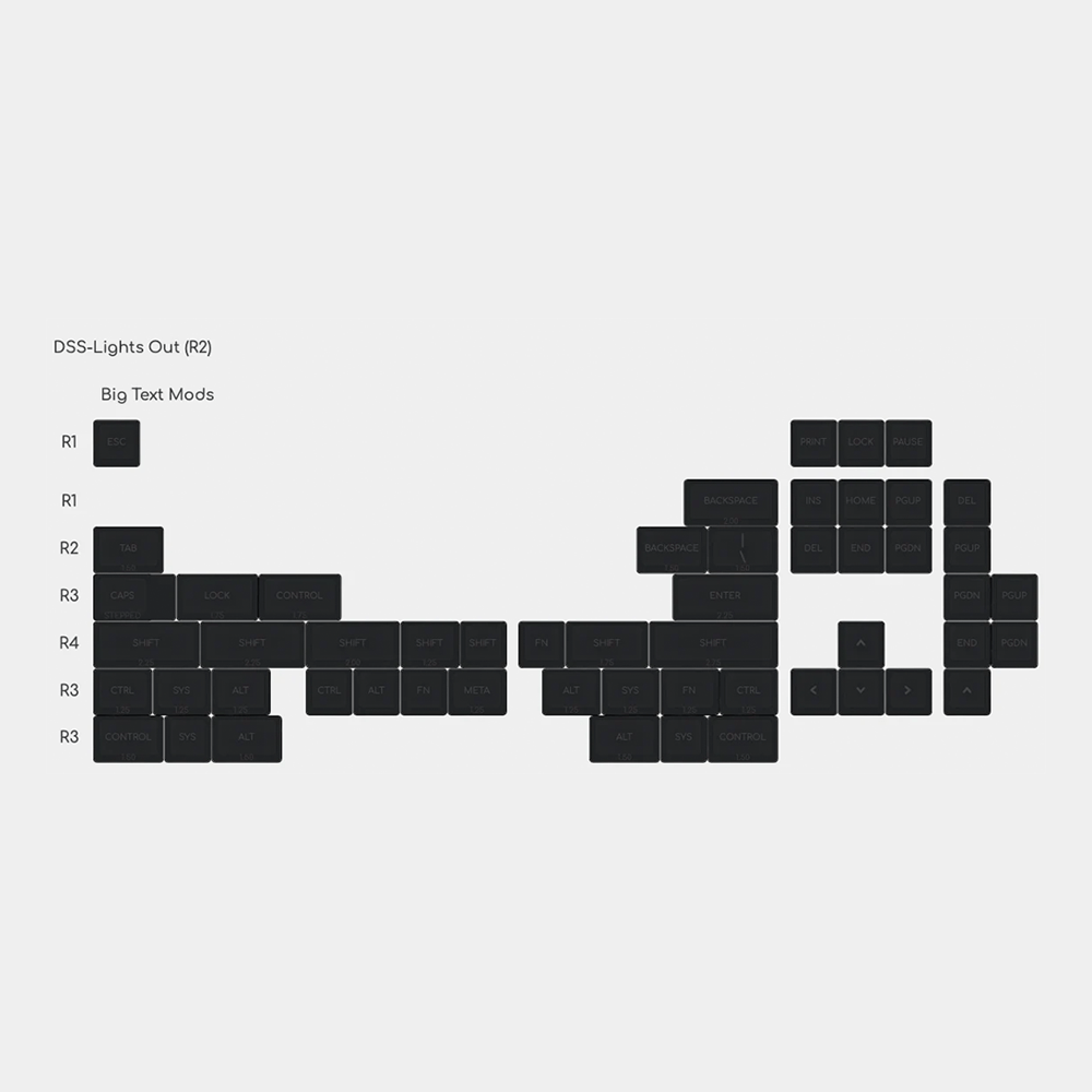 Ce set de touches est une véritable pièce maîtresse, arborant un design noir profond et élégant – minimaliste, raffiné et puissant à la fois. Utilisant le profil DSS, fabriqué par Signature Plastics, il est spécialement conçu pour les claviers mécaniques équipés de commutateurs MX. Le concepteur (RingerKeys) a imaginé un set haut de gamme, entièrement noir, qui préserve la lisibilité des touches aussi bien sur les claviers noirs que sur les configurations plus colorées. Il propose des kits modulaires pour une grande variété de configurations et d'options de personnalisation – claviers 40 %, orthographiques ou complets.