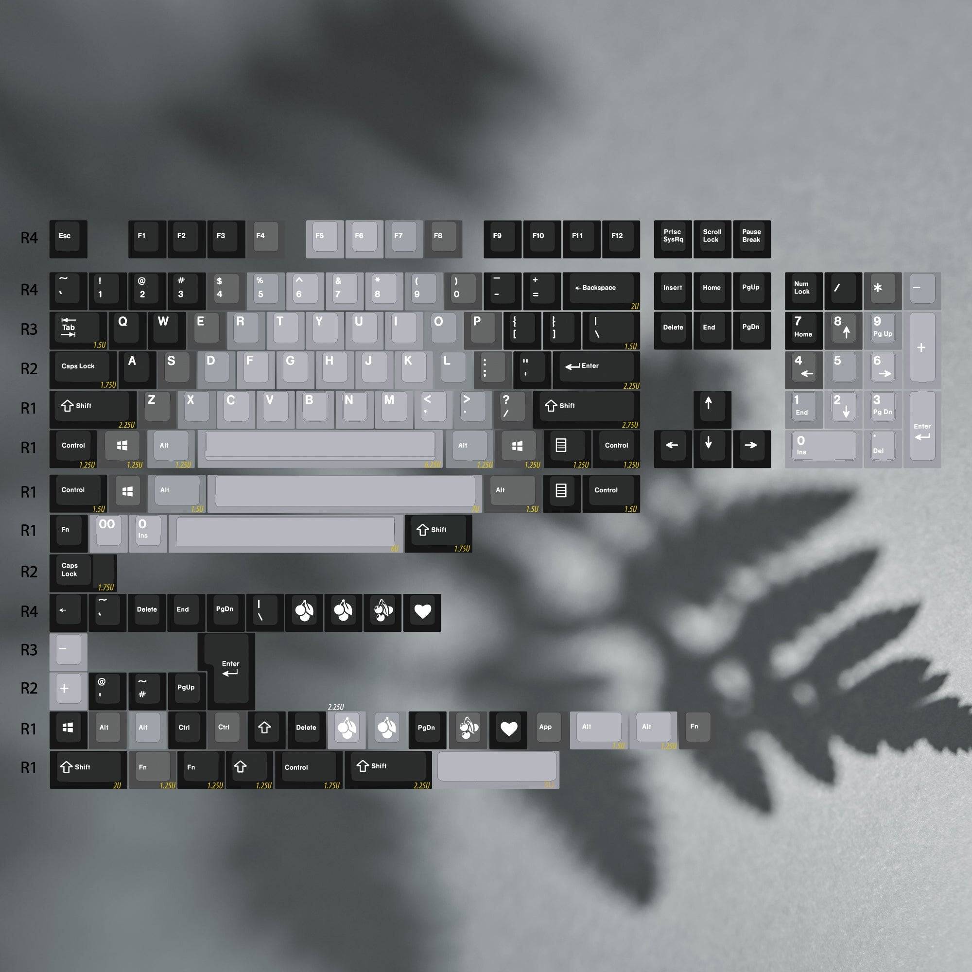 Le set de touches ePBT Shadow est un ensemble de touches de clavier discret et de haute qualité, fabriqué en plastique PBT durable. Ses caractères, imprimés par sublimation thermique inversée, sont d'une grande netteté. La palette de couleurs sombres et élégantes associe des tons profonds à des caractères contrastés, garantissant une excellente lisibilité et un aspect professionnel et harmonieux. Dotées du profil Cherry MX classique, ces touches offrent une frappe ergonomique et familière, confortable aussi bien pour le travail de bureau que pour les jeux. Leur surface mate légèrement texturée assure une bonne adhérence et reste sans brillance indésirable, même après une utilisation prolongée.