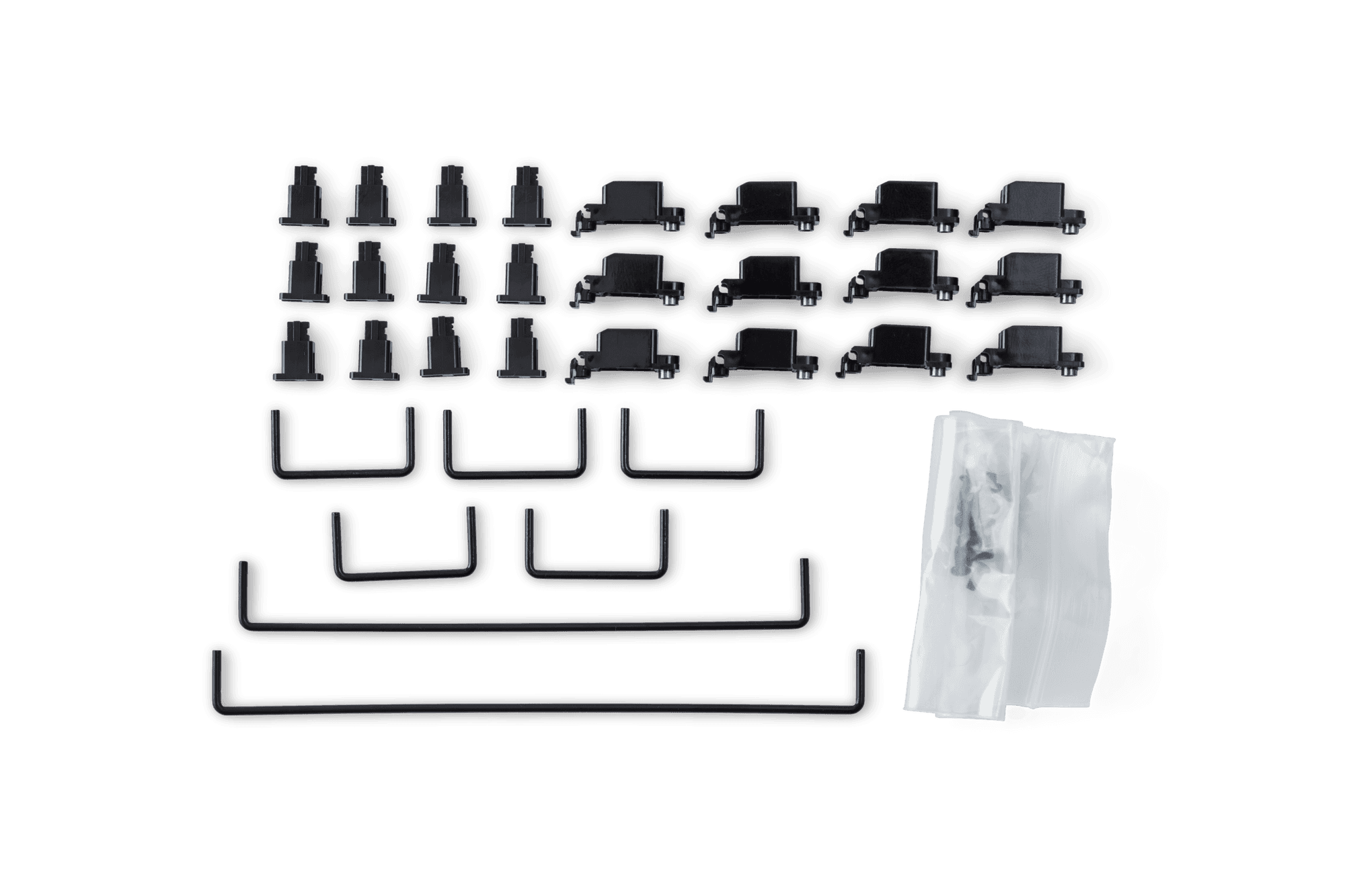 Tiges de câbles : Comprend 5 pièces pour les touches 2 U, 1 pièce pour les touches 6,25 U, 1 pièce pour les touches 7 U (selon la variante du kit).