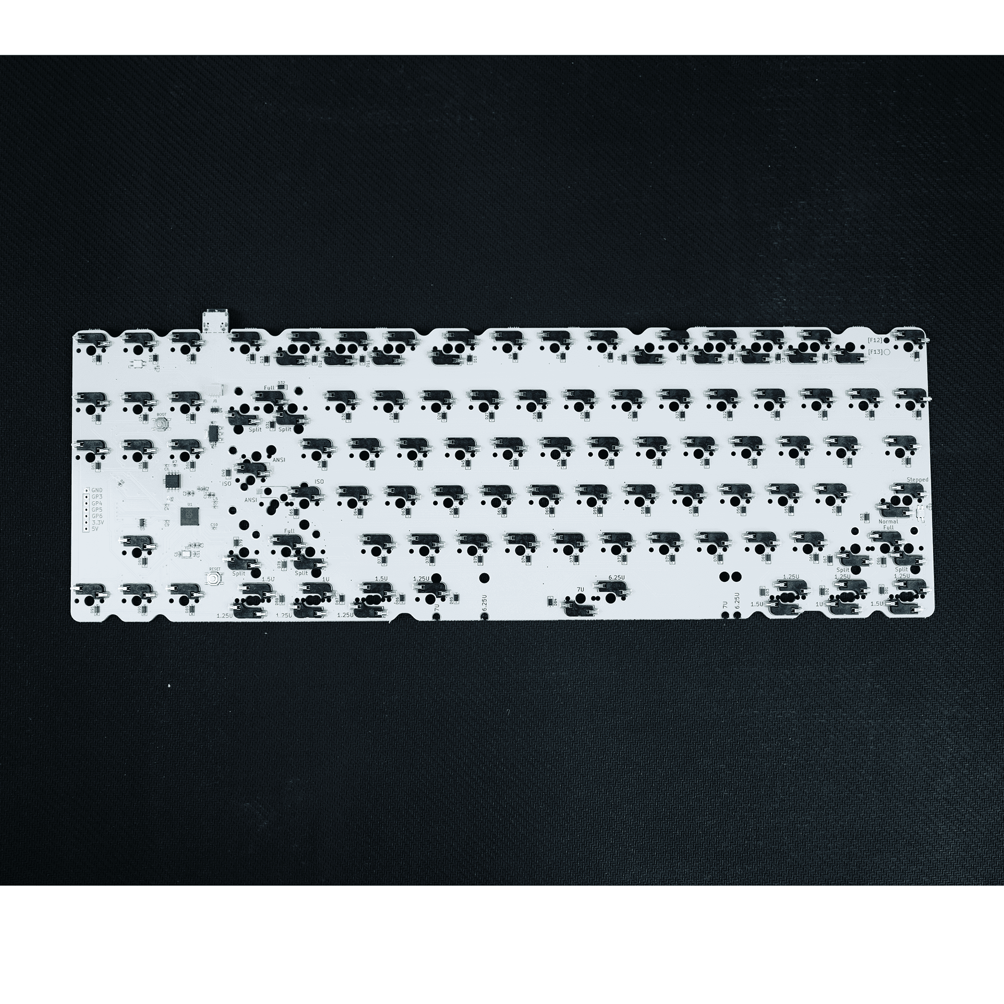 Cette carte PCB à touches interchangeables à chaud est conçue pour les utilisateurs souhaitant créer une base moderne et personnalisable pour un clavier 87 touches (TKL) ou une disposition équivalente au format ISO. Elle offre une compatibilité plug-and-play avec les commutateurs de type MX, la programmation multiple via QMK/VIA et un ensemble de fonctionnalités de base de haute qualité, incluant un port USB-C – idéal pour la conception de claviers personnalisés dans les pays germanophones.