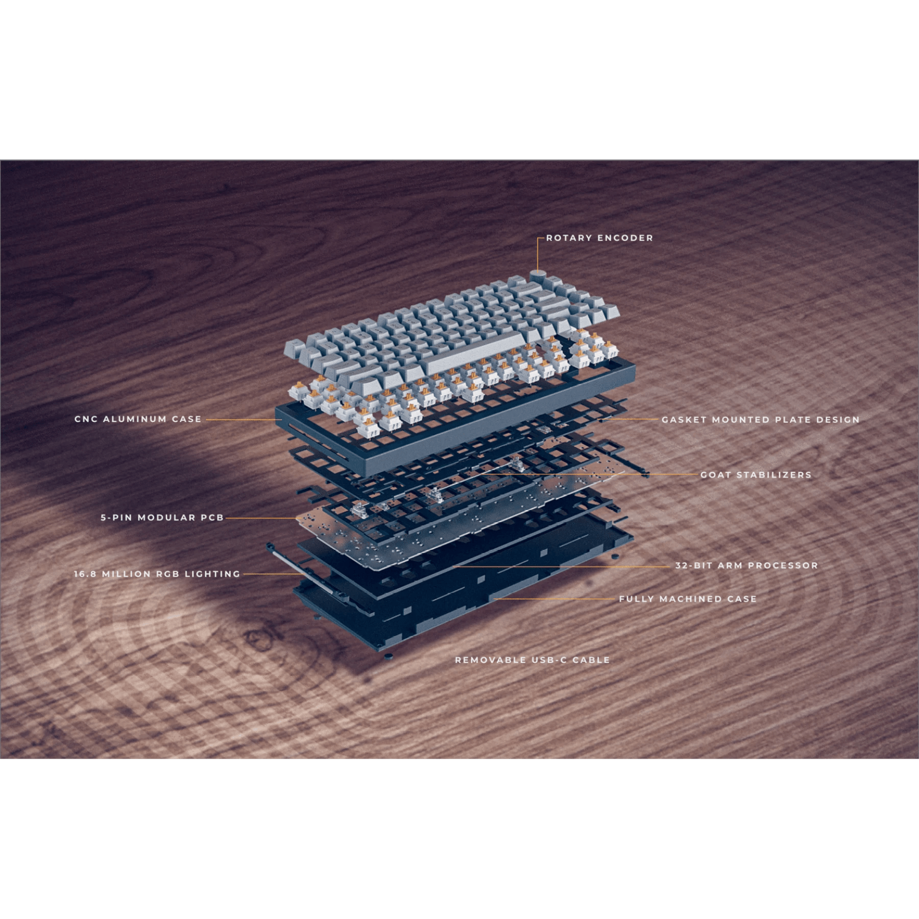 Disposition : 75 % au format ANSI (82 touches plus encodeur multimédia rotatif) pour la disposition américaine.