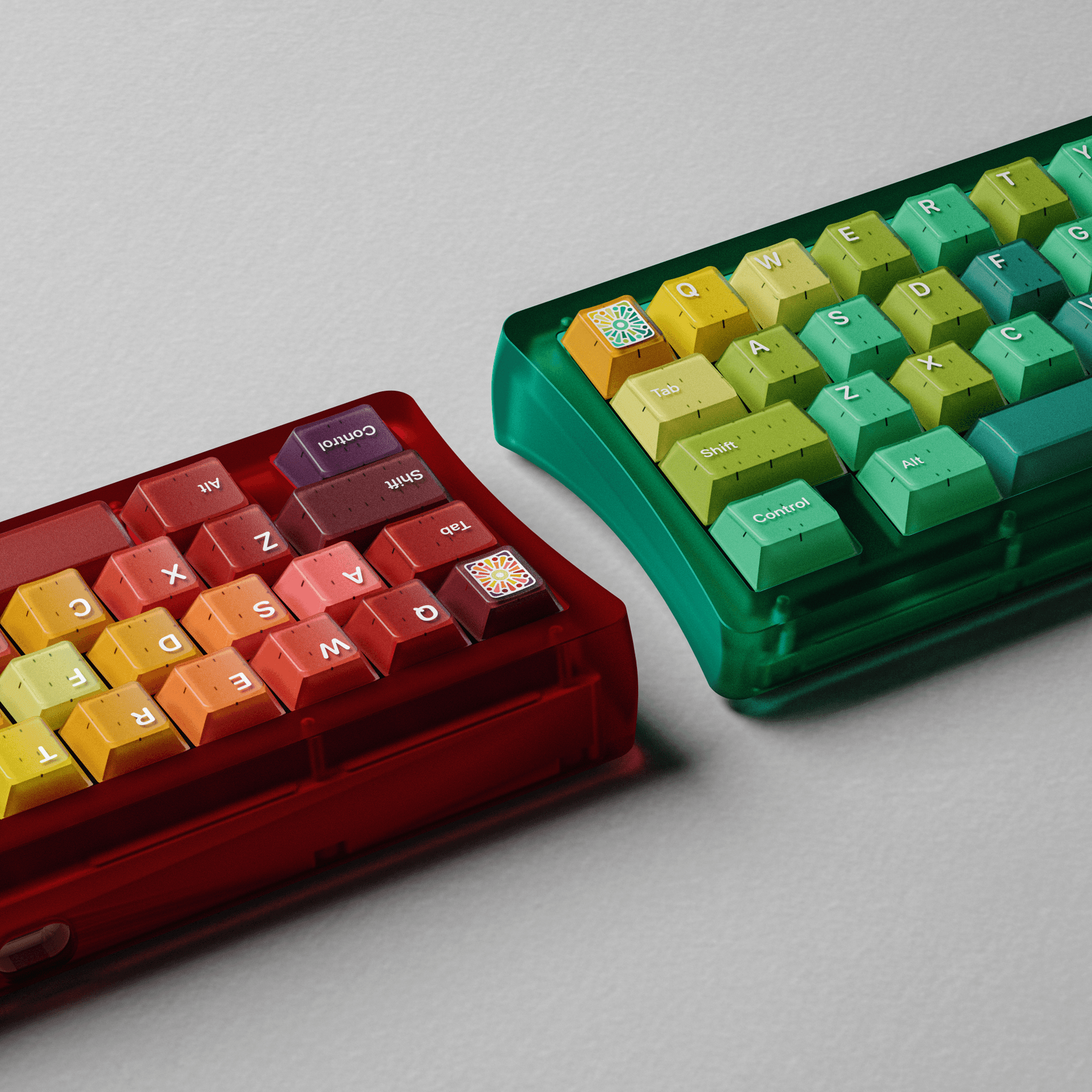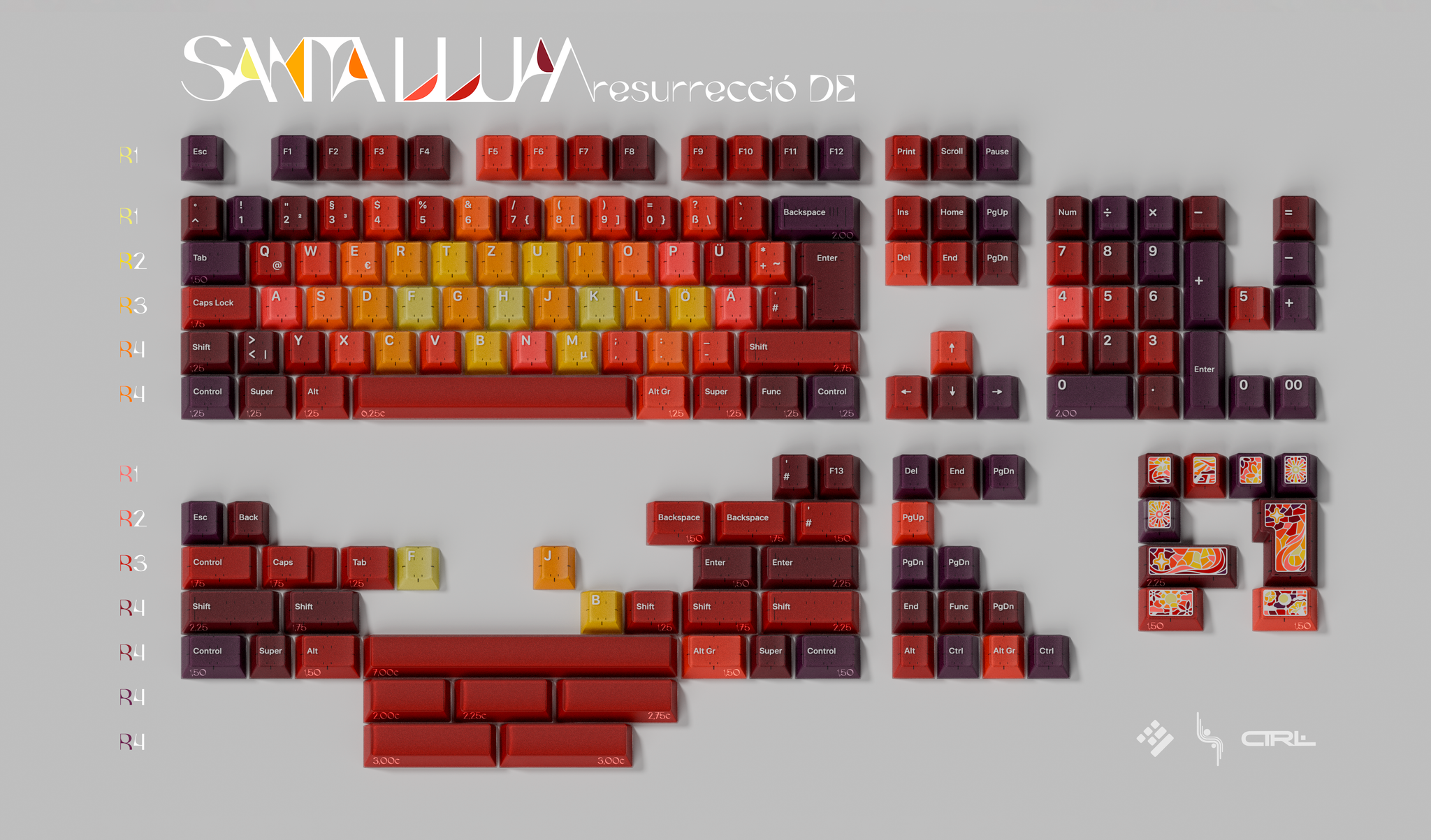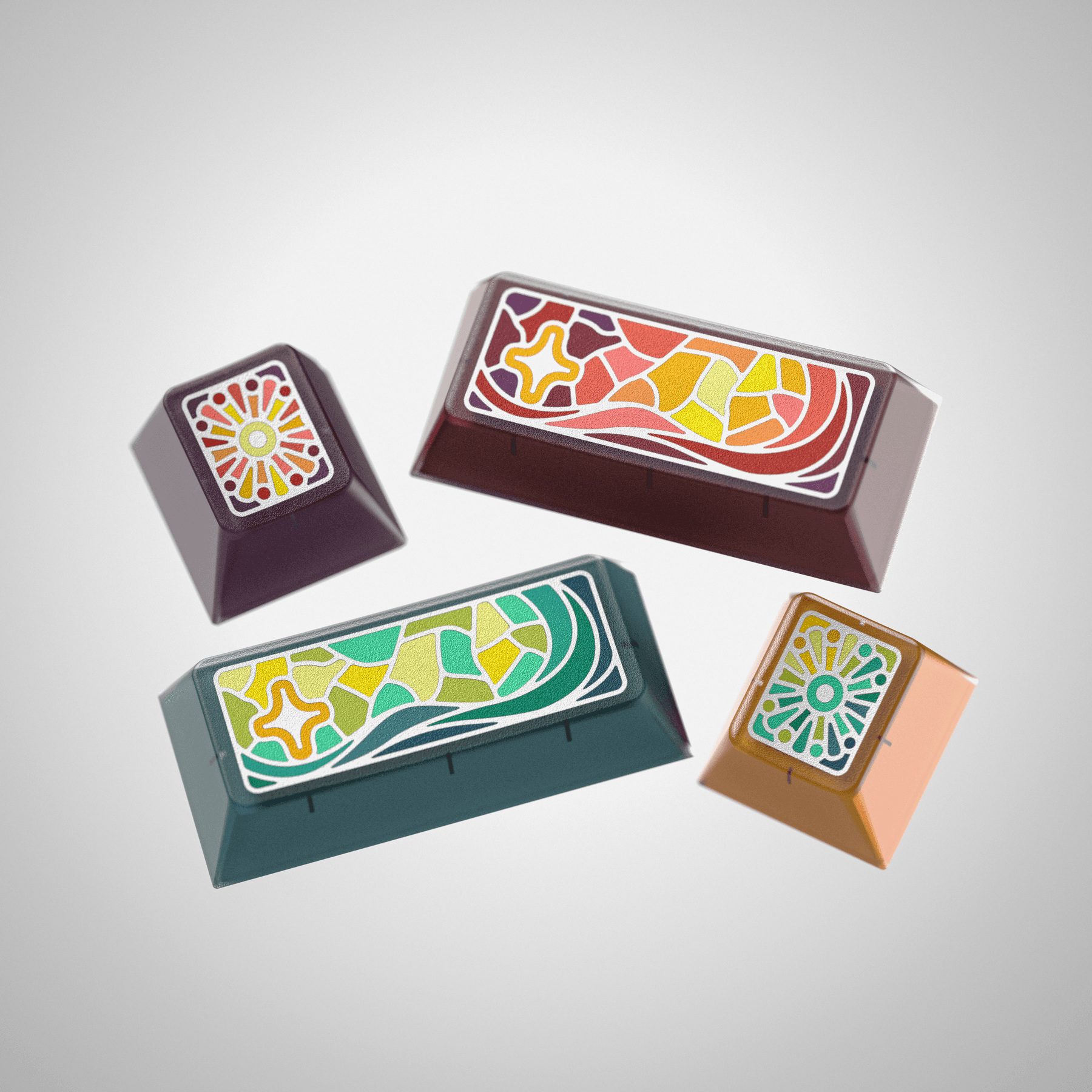 Le kit de base KAP Santa Llum Resurrecció est un ensemble de touches personnalisées au design soigné, conçu par Keyreative et inspiré des chaudes nuances de la lumière du soir filtrant à travers les vitraux de la Sagrada Família de Barcelone. Là où le set Naixement capture l'aube, Resurrecció représente la transition du jour au crépuscule, offrant à votre clavier une palette harmonieuse de rouges profonds, d'ambres riches et de violets vibrants . L'association de caractères en ABS double injection et de motifs originaux imprimés aux UV crée une expérience visuelle riche et colorée, particulièrement saisissante sur les claviers rétroéclairés. Le profil classique Cherry MX (KAP) garantit un confort de frappe optimal, tandis que le design thématique apporte une personnalité unique à tout clavier personnalisé.