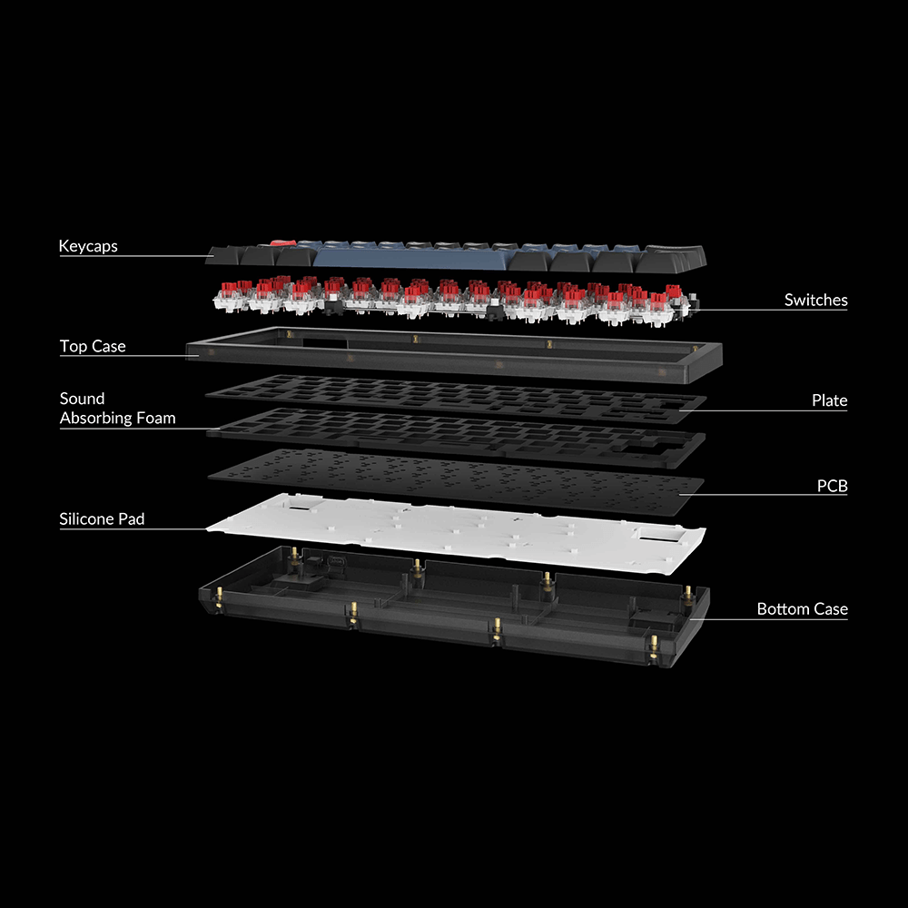 Montage des commutateurs : remplaçables à chaud – compatibles avec les commutateurs MX à 3 et 5 broches