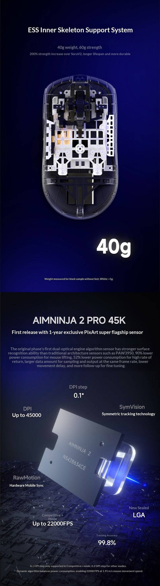 Die Ninjutso Sora V3 Gaming Mouse ist eine ultraleichte High-Performance-Maus, die speziell für kompetitives Gaming entwickelt wurde. Mit ihrem minimalistischen, ergonomisch optimierten Gehäuse und einem Gewicht von nur rund 40 g bietet sie außergewöhnliche Kontrolle und schnelle Reaktionsfähigkeit. Die Kombination aus modernster Sensortechnologie und innovativen Features wie HyperClick und HyperScroll macht sie besonders attraktiv für anspruchsvolle Spieler, die Präzision und Geschwindigkeit auf höchstem Niveau erwarten. Dank kabelloser 8K-Technologie und langlebiger Bauweise eignet sich die Sora V3 sowohl für intensive E-Sports-Sessions als auch für den täglichen Einsatz.
